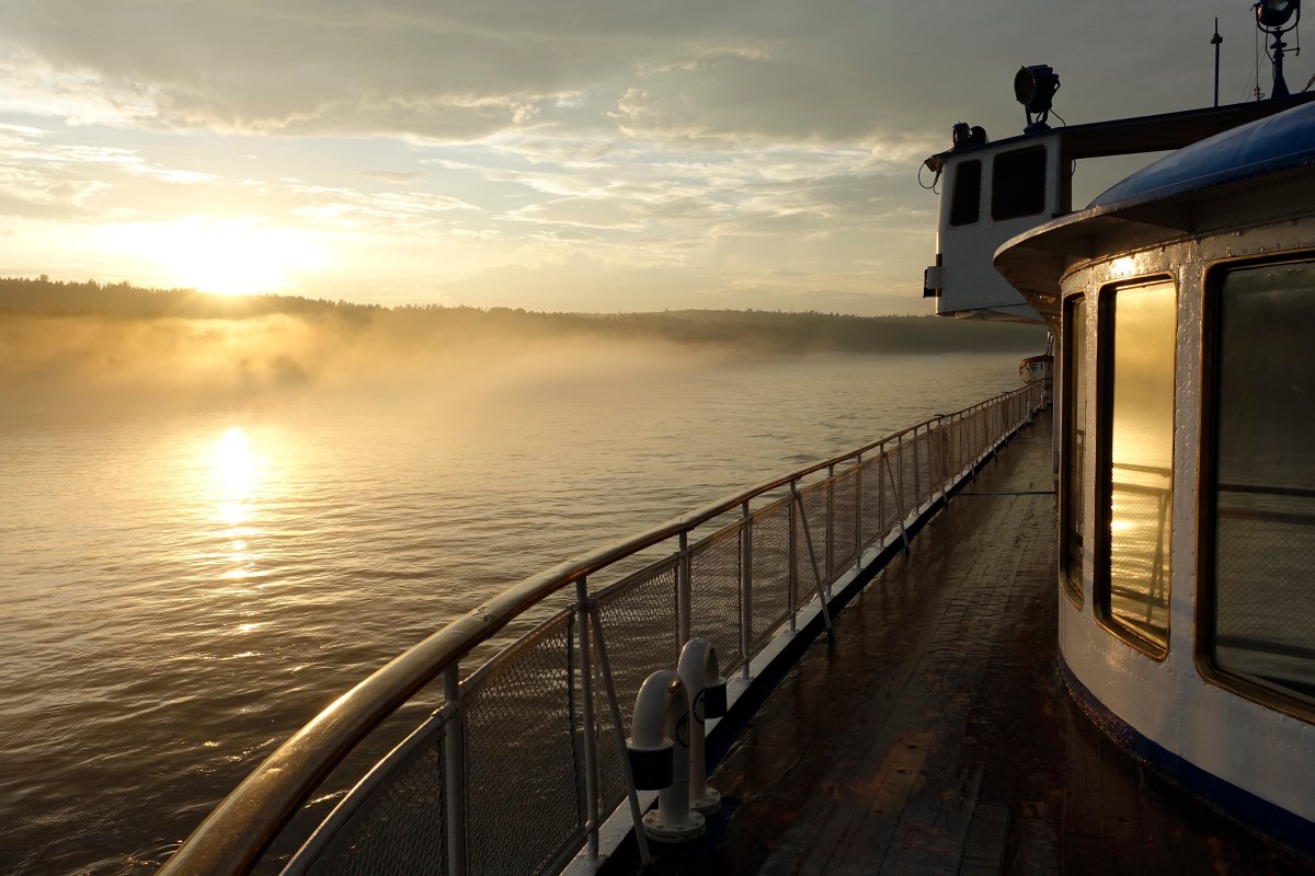 Slow travelling nennt man das wohl. Ich nehme mir einige Stunden Zeit, um eine deutsche Wochenzeitung zu lesen und gehe auf ein Bier und eine Soljanka ins Schiffsrestaurant. Zum Glück arbeitet dort die einzige Person auf dem ganzen Schiff die englisch spricht und mich damit vor dem sicheren Hungertod bewahrt. All die Hinweisschilder und Durchsagen kann man getrost ignorieren; offenbar haben sie ohnehin keinen bedeutenden Inhalt. Aber eine russische Speisekarte bei der Bestellung zu ignorieren, führt lediglich dazu, dass man kein Essen kriegt.