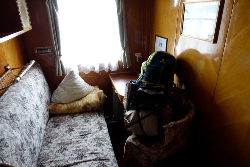 Ich reise erste Klasse, was schön ist, denn in meiner kleinen aber pittoresken Einzelkabine habe ich endlich mal wieder ein bisschen Zeit für mich. Nicht, dass es nicht überaus kurzweilig mit meinen Mitreisenden im Viererabteil gewesen wäre, aber die vollständige Aufgabe der Privatssphäre ist mitunter auch anstrengend. Ich genieße den Luxus eines eigenen Waschbeckens in der Kabine, den Blick auf den Fluss und die schon so vertraut wirkenden vorbeiziehenden sibirischen Wälder.
