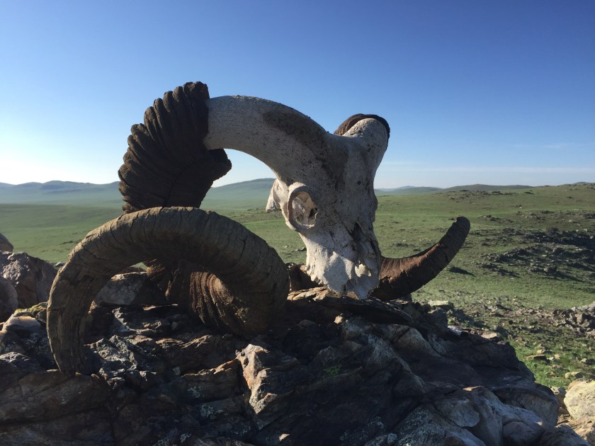 Aber von vorn: Unser UAZ rumpelte durch eine Art Gebirge und während wir uns fragten, wie es möglich ist, dass die Karre in diesem extremen Gelände nicht einfach auseinanderbricht, offenbarte das Gefährt heimlich seine Schwachstelle. Erst als es hinter uns deutlich zog, haben wir uns umgeguckt. Die Hecktür war aufgegangen und unsere Rucksäcke haben bereits weitläufig den Wüstenboden verschönert. Wir machen eine Vollbremsung und ernten unsere Besitztümer aus der Steppe. Es fehlten zwei Decken und eine Matratze. Dolmetscher und Fahrer sind ein wenig aufgeregt und wollen ein paar Meter zurückfahren, um die Sachen wiederzufinden. Die Strecke hat uns schon ein halbes Schleudertrauma beschert und wir beschließen deshalb, uns kurz die Beine zu vertreten. Während das Auto hinter der nächsten Bergkuppe verschwindet, witzeln wir: „Und Tschüss!“.