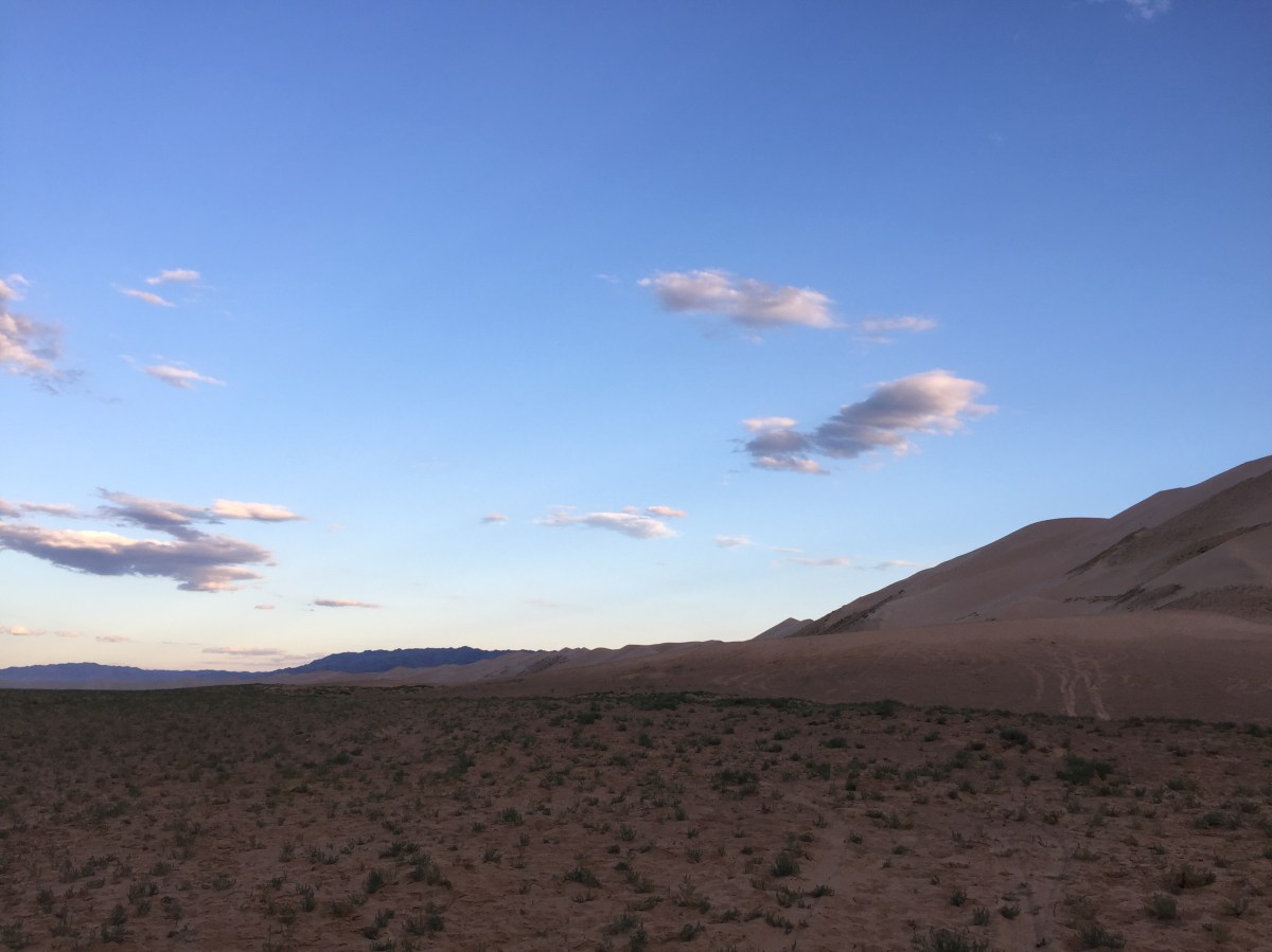 Aber von vorn: Unser UAZ rumpelte durch eine Art Gebirge und während wir uns fragten, wie es möglich ist, dass die Karre in diesem extremen Gelände nicht einfach auseinanderbricht, offenbarte das Gefährt heimlich seine Schwachstelle. Erst als es hinter uns deutlich zog, haben wir uns umgeguckt. Die Hecktür war aufgegangen und unsere Rucksäcke haben bereits weitläufig den Wüstenboden verschönert. Wir machen eine Vollbremsung und ernten unsere Besitztümer aus der Steppe. Es fehlten zwei Decken und eine Matratze. Dolmetscher und Fahrer sind ein wenig aufgeregt und wollen ein paar Meter zurückfahren, um die Sachen wiederzufinden. Die Strecke hat uns schon ein halbes Schleudertrauma beschert und wir beschließen deshalb, uns kurz die Beine zu vertreten. Während das Auto hinter der nächsten Bergkuppe verschwindet, witzeln wir: „Und Tschüss!“.