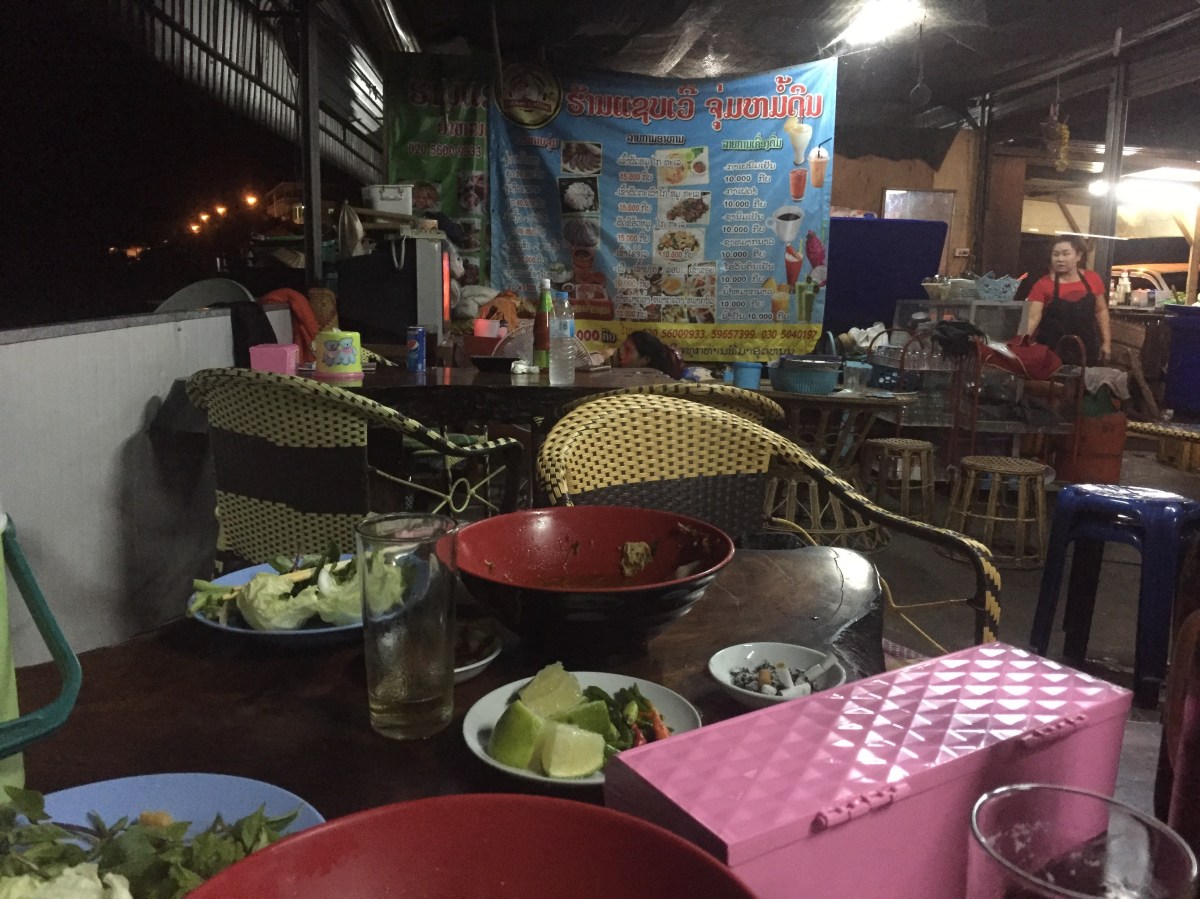 Weitere Unterschiede zu Deutschland werden beim Abendessen sichtbar. Wir wollen authentisches laotisches Essen, weshalb wir in ein Restaurant gehen, in dem weit und breit kein Tourist zu sehen ist. Das Restaurant stellt seine Authentizität auch gleich unter Beweis, als die Bedienung die Bestellung von zwei Bier nicht versteht, obwohl die einzige Marke hier „Beerlao“ heißt.