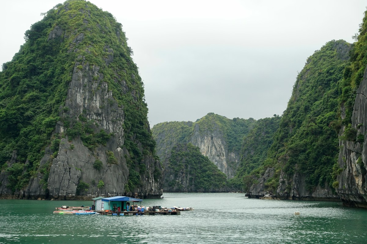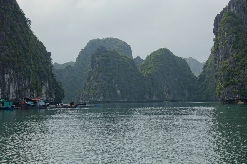 Wir beeilen uns daher auf ein Boot zu kommen, um für ein paar Tage in unberührteres Terrain vorzudringen. Über 2000 Karstfelsen ragen in der Bucht hunderte Meter aus dem Wasser. Weltkulturerbe – mal wieder.