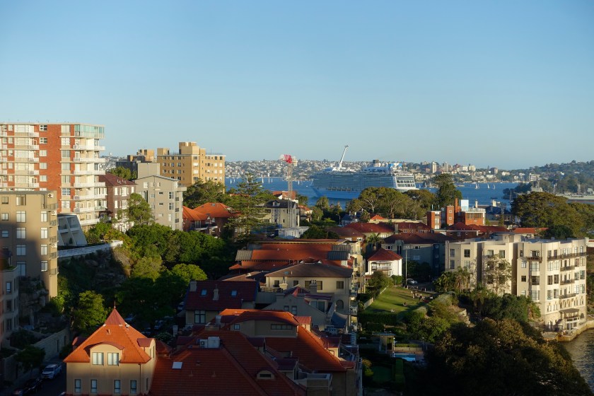 Ich habe mich auf die andere Seite des Hafens zurückgezogen, von wo aus ich – die Oper und die Brücke im Blick – der untergehenden Sonne zusehe. Ein Kreuzfahrtschiff größer als der Berliner Hauptbahnhof parkt gerade aus und verschwindet in den Weiten des Pazifik. Während die Bugwellen gegen das Ufer plätschern, fällt mir auf, dass ich schon ein halbes Jahr unterwegs bin. Fertig bin ich aber noch lange nicht, nein, ich bin immer noch hungrig.
