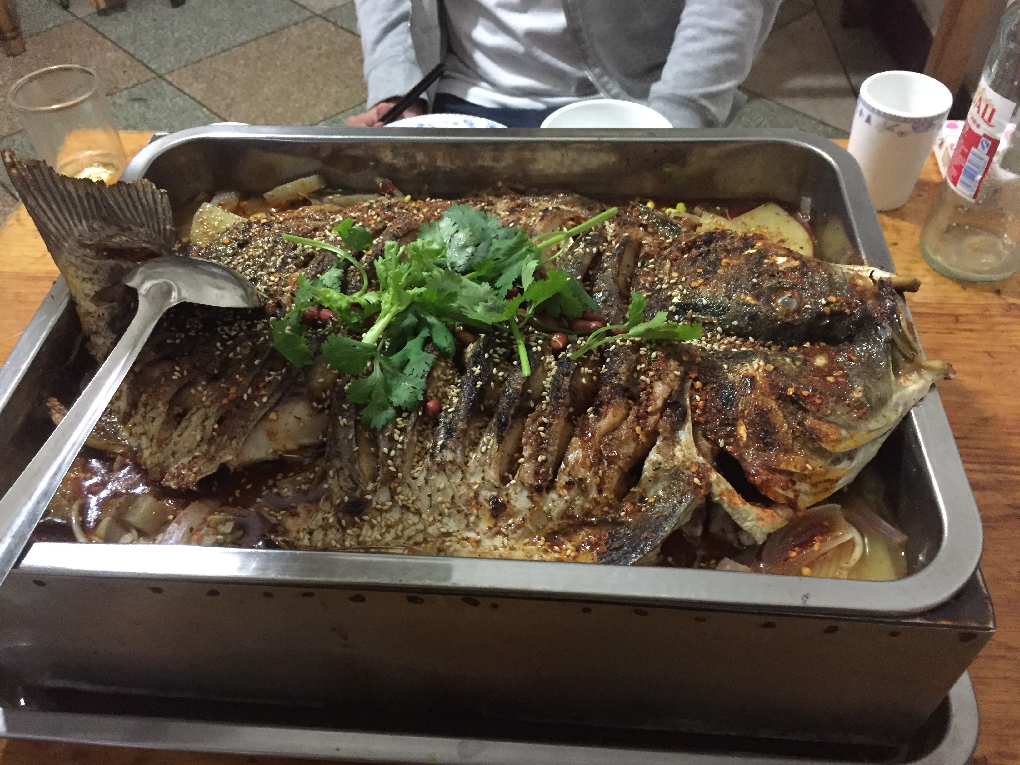 Die Chinesen veranstalten am Nachbartisch eine Sauerei für die man in Deutschland Hausverbot bekommen würde. Es wird am Tisch geraucht, während andere noch essen. Die Kippen landen auf dem Boden oder gleich auf dem abgegessenen Teller. Es fängt an Spaß zu machen. Wir bestellen mehr Bier. Es klappt jetzt reibungslos.